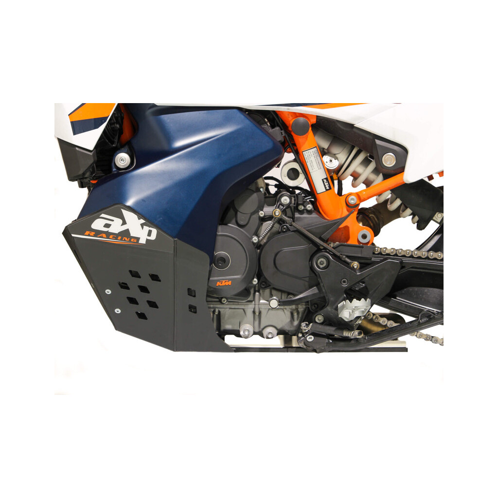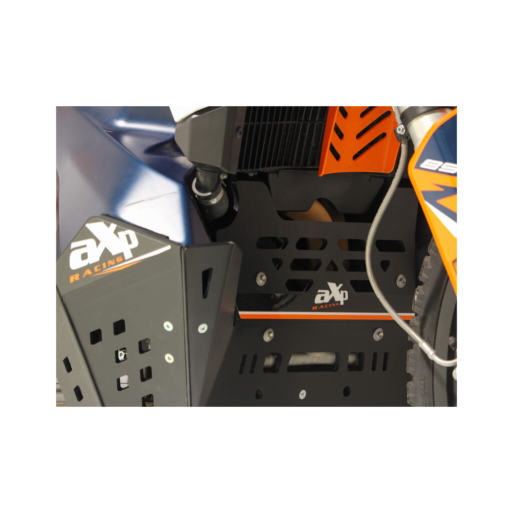 Conçu en polyéthylène haute densité d’épaisseur 8mm, le sabot AXP offre une protection optimale, plus légère que l'aluminium, plus résistante que le carbone. Fixé en cinq points sur le support d’origine plus un sur le cadre, le design du sabot intègre la protection du pot et du collecteur tout en limitant les entrées de boue.