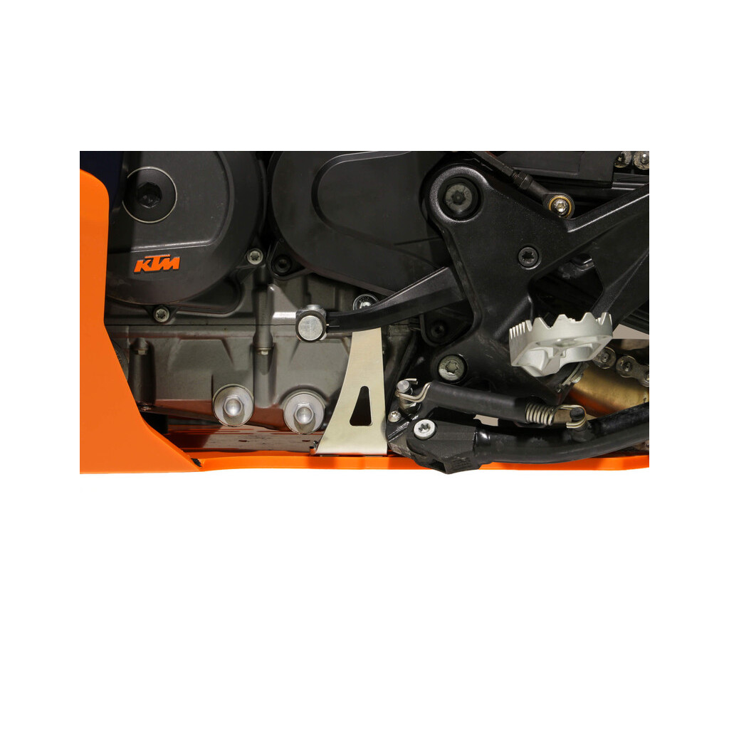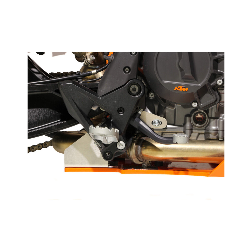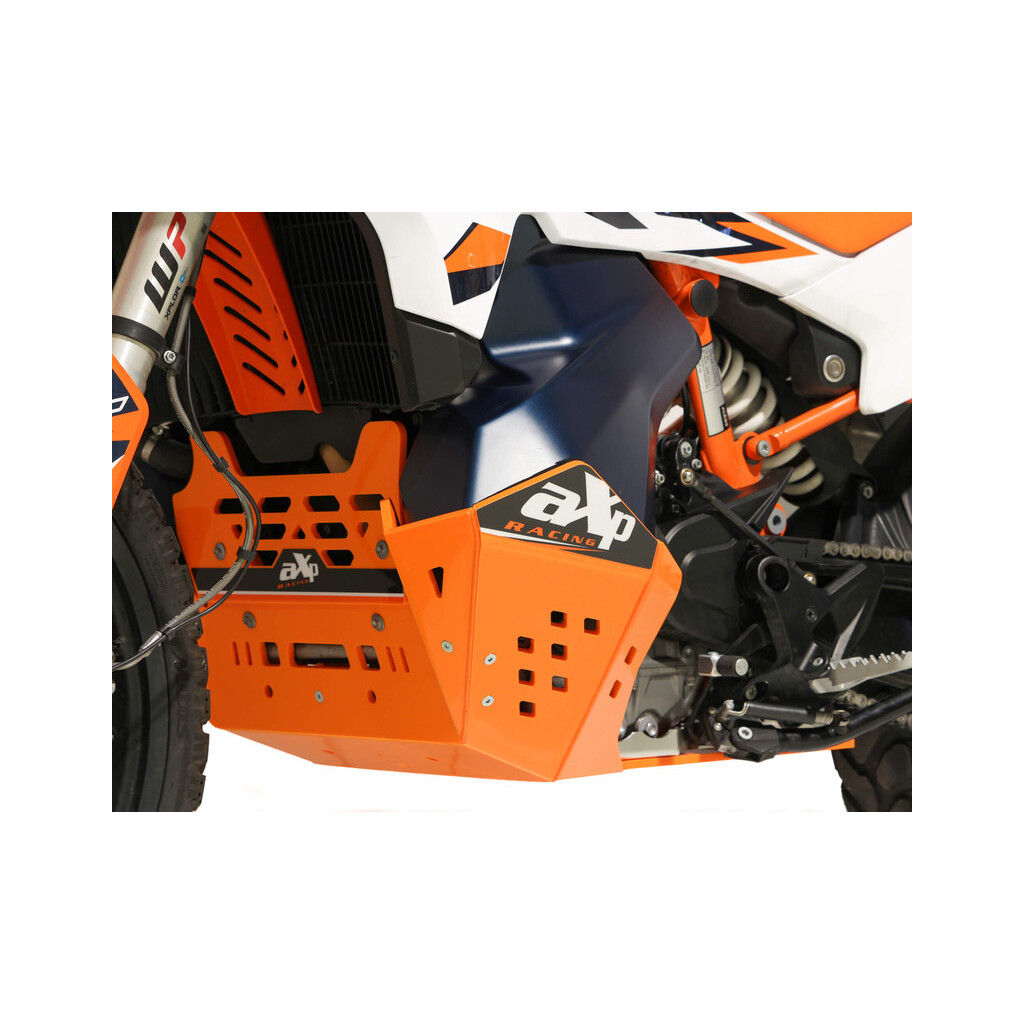 Sabot KTM 790 Adventure / 890 Adventure / R / L TOURING - Poids : 3,9Kg – Conçu en plastique polyéthylène de 8mm d’épaisseur, cette nouvelle version reprend le meilleur du modèle précédent et intègre un certain nombre d’améliorations, dont la compatibilité avec la béquille centrale KTM ! Le sabot AXP offre une protection supérieure de chaque côté du réservoir en couvrant également la pompe à essence et en intégrant une mousse intermédiaire évitant le frottement et les éclats de peinture. Le design a été repensé pour rendre le montage compatible avec la protection de pompe à essence d’origine KTM. La plaque anti-boue redessinée se place désormais devant le sabot pour éviter la fonte du plastique et tout contact avec le garde boue avant. Les soudures ont été modifiées et renforcées par des plaques en aluminium d’épaisseur 4mm. Enfin, l’intégration d’un trou côté droit permet d’y glisser la durite. Pour la compatibilité avec divers accessoires, merci de consulter l’onglet « caractéristiques ». Modèle également disponible en orange sous la référence AX1738 et compatible avec les KTM 790 ADVENTURE / 790 ADVENTURE R / 890 ADVENTURE / 890 ADVENTURE R uniquement.