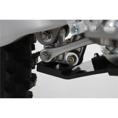 Nouveau design et processus de fabricationMatière Polyéthylène Haute Densité épaisseur 8mmSabot rallongé jusqu’à protéger la biellette d’amortisseurDouble épaisseur en dessous de la biellette (pièce de renfort fournie)Protection intégrale du cadre jusqu’au-dessous des cales pieds Testé et approuvé par Wade Young (Sherco Factory Team) après 1 année de test en condition "Hard/Extreme"