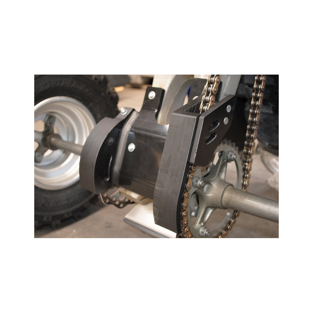 Le sabot arrière AXP est destiné à protéger la partie arrière inférieure, notamment la transmission et la jonction entre l’axe des roues avec le bras arrière.