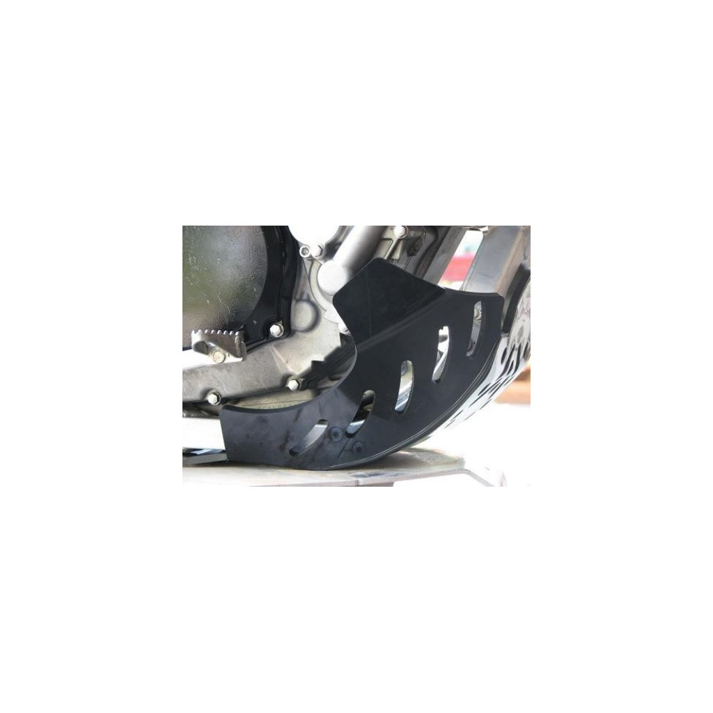 Polyéthylène haute densité d’épaisseur 6 mm, découpé, formé à chaudPlus enveloppante que les semelles MXPlus légère que les sabots enduro40% plus léger que l’aluminium épaisseur 4 mmNe mémorise pas les chocsPas de vibrationsMontage facile sur les fixations d’origine sans perçage, ni modification de la moto (kit visserie et notice fournie)