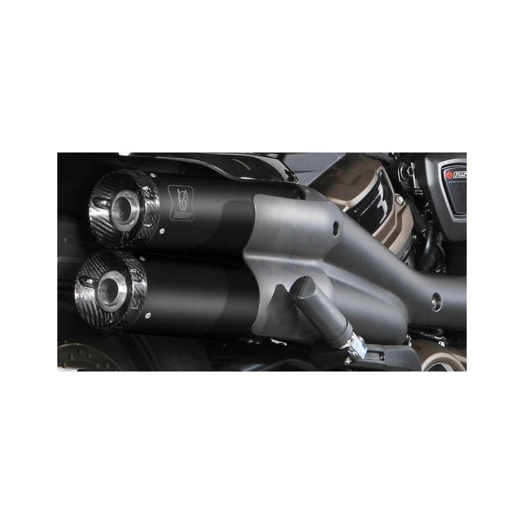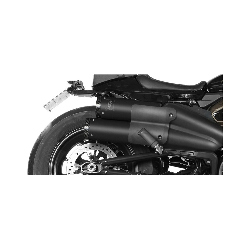 Les échappements de la gamme HR-1 ont une forme ronde assemblée avec des rivets noirs au look spécial. Il est complété à la sortie par un embout en alu verni noir céramique ou en carbone "twill 3K look".