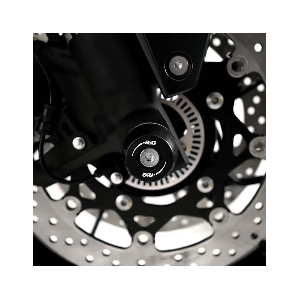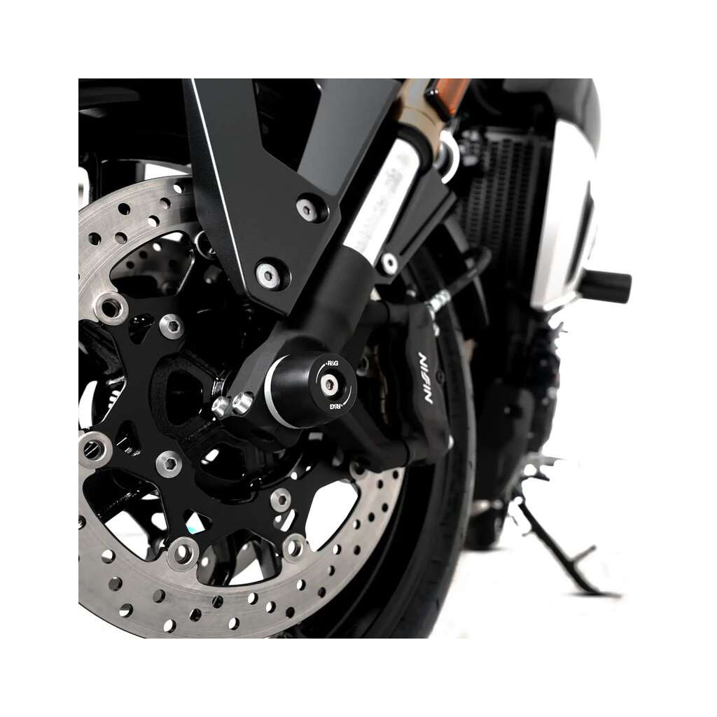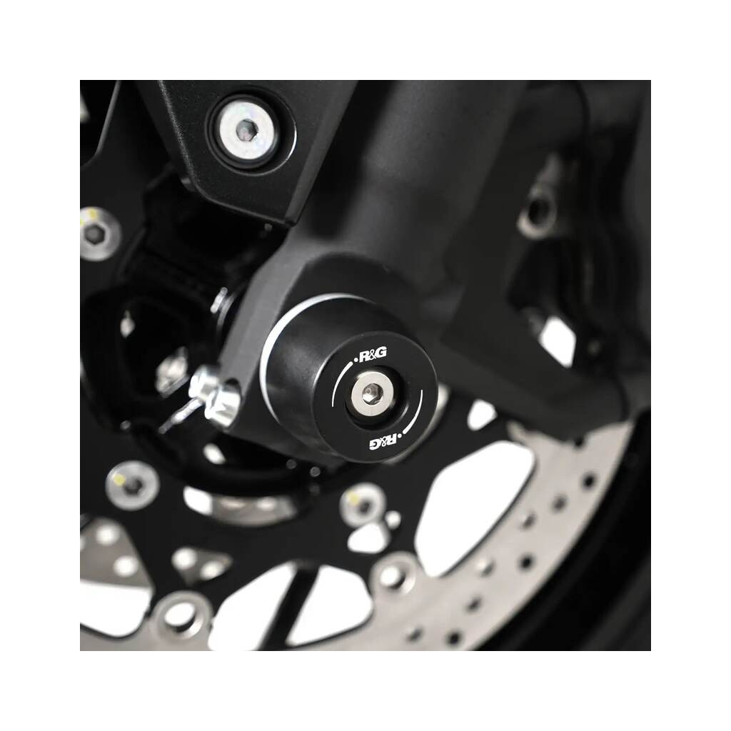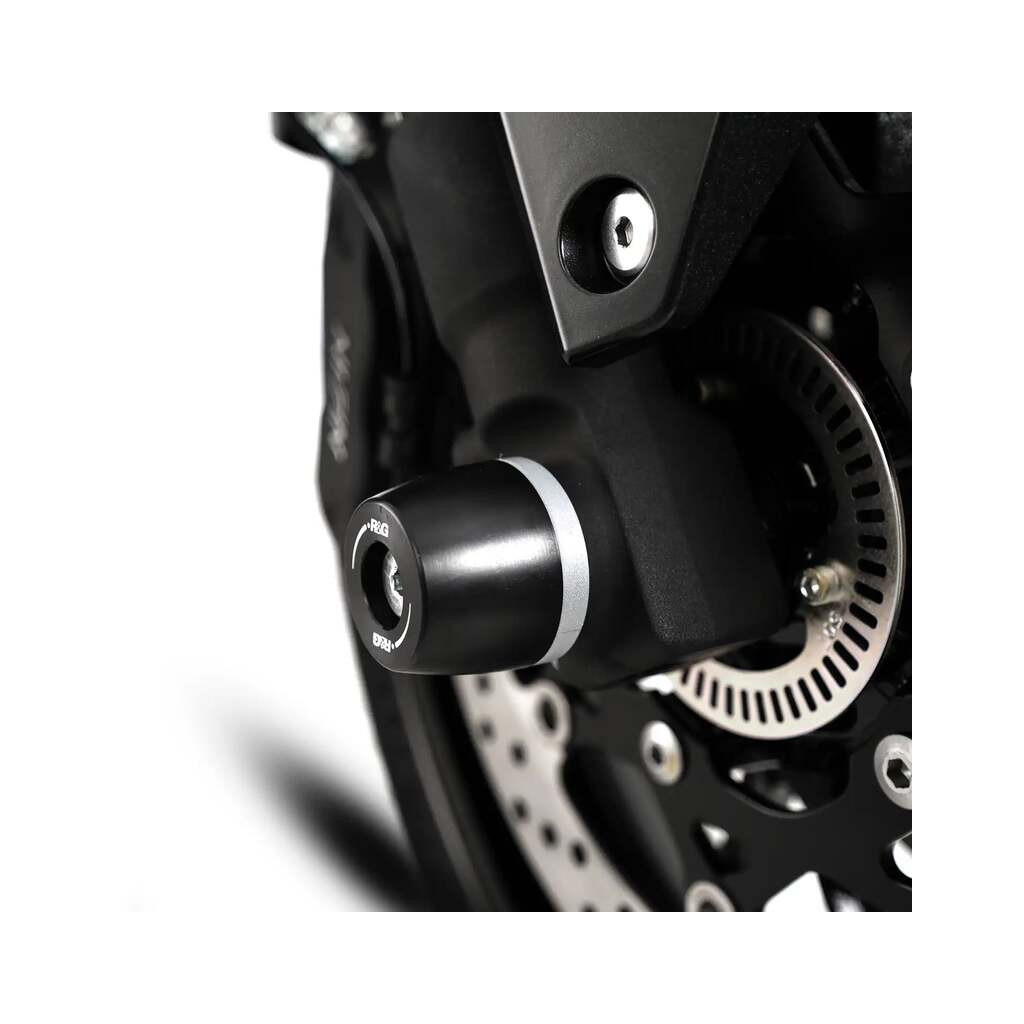 Protections de fourche R&G Racing. Protègent les fourreaux de fourche vulnérables en cas de chute ou de glissade. Construction en polyamide haute résistance avec embouts remplaçables. Installation simple sans modification permanente de la moto.