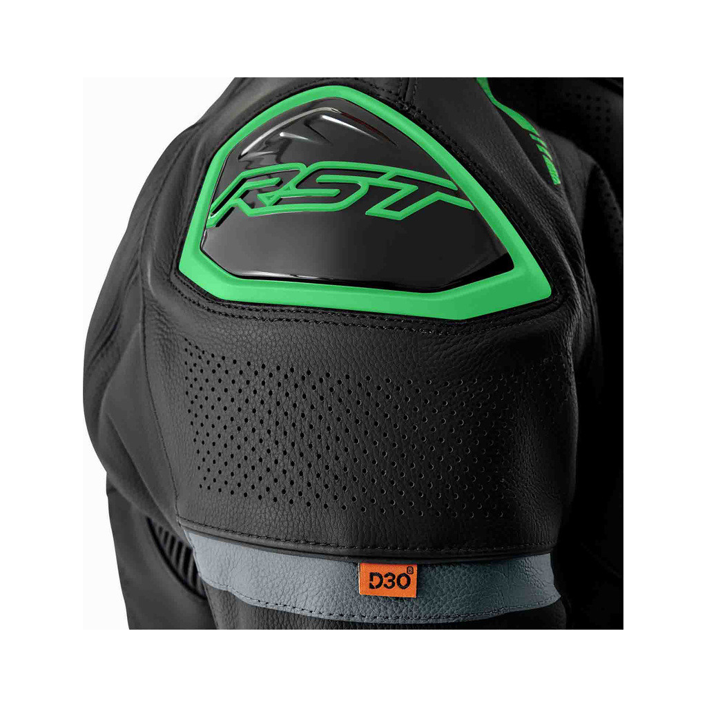 Veste RST S1 D3O cuir - noir/vert fluo