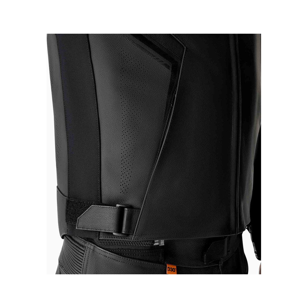 Inspiré de la combinaison de piste en cuir S1 D3O, cet ensemble blouson et pantalon offre le parfait équilibre entre performance et confort. Il se distingue par ses ajusteurs de taille et ses poignets en néoprène pour un maintien optimal.Les sliders d’épaules et le zip de connexion à 360° permettent de l’associer facilement au pantalon cuir S1 CE, formant ainsi un ensemble deux-pièces complet et performant. Le tout est désormais équipé de protections D3O.