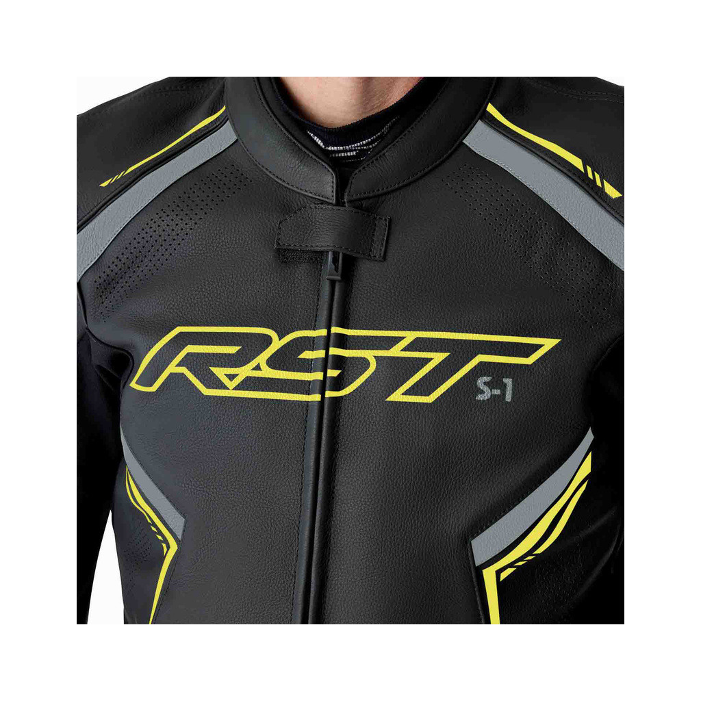 Veste RST S1 D3O cuir - noir/jaune fluo