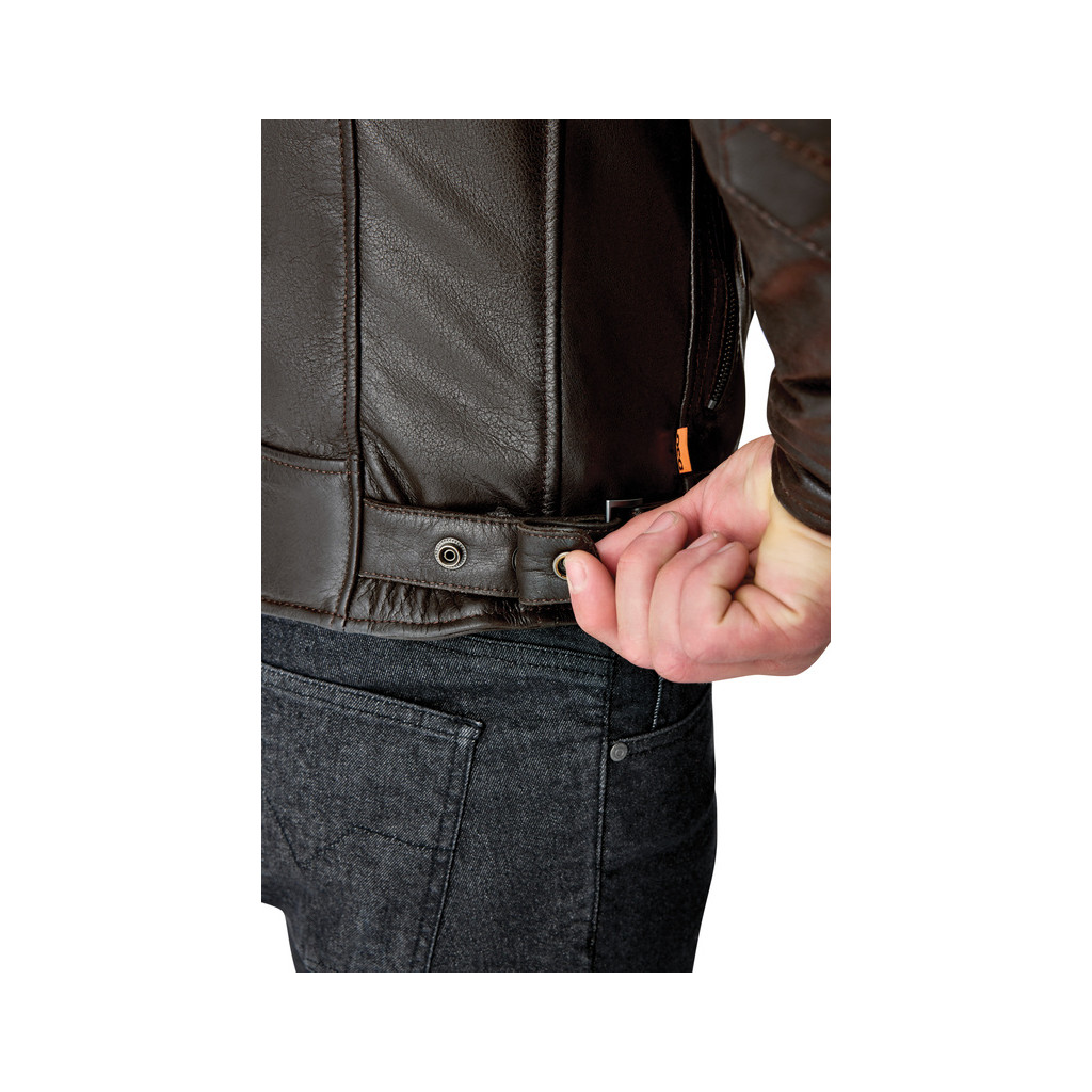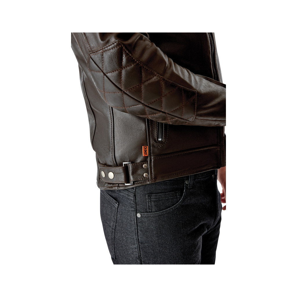 Le IOM TT Hillberry 2 tire son nom du célèbre virage Hillberry du Tourist Trophy de l’île de Man, situé au 36ᵉ repère du circuit de montagne de Snaefell. Ce blouson TT haut de gamme est conçu en cuir aniline ultra souple, offrant une allure élégante et authentiquement vintage. Sa doublure en satin à motif damier s’accorde parfaitement avec les détails zippés rétro, les ajusteurs de poignets et les bandes en cuir inversé sur les bras. Si vous aimez l’esprit du TT, vous allez adorer ce blouson — désormais équipé de protections D3O pour une sécurité optimale.