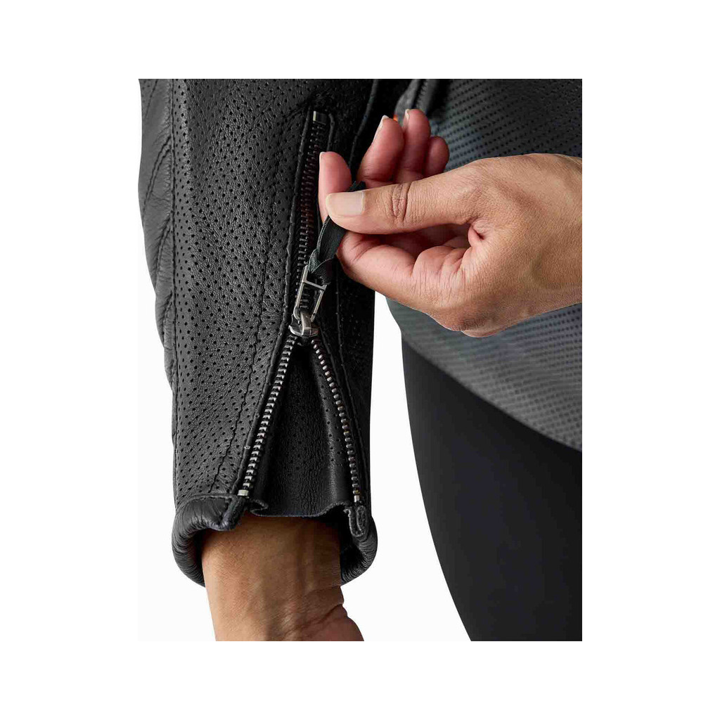 Nous avons repensé la mythique RST Roadster pour donner naissance à la Roadster Air, spécialement conçue pour les journées les plus chaudes. Réalisée en cuir entièrement perforé et dotée d’une doublure en maille légère, elle assure une aération optimale sur tout le corps. Plus légère et plus confortable, elle conserve le style intemporel de la Roadster tout en intégrant désormais des protections D30 pour une sécurité accrue.