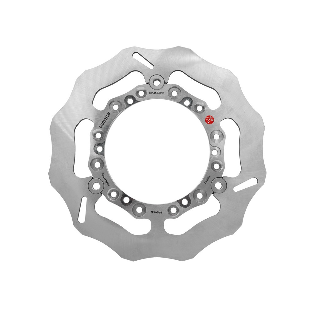 La conception ondulée spéciale du disque de frein nettoie automatiquement la plaquette de frein et la surface de roulement/friction du disque de frein à chaque rotation du disque. En outre, la chaleur générée peut être mieux dissipée grâce à son bord ondulé plus large ce qui évite la déformation sous l'effet d'une chaleur extrême. L'épaisseur du matériau de 4,5 mm permet également au disque de résister à une chaleur extrême.