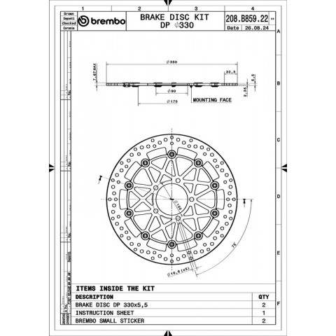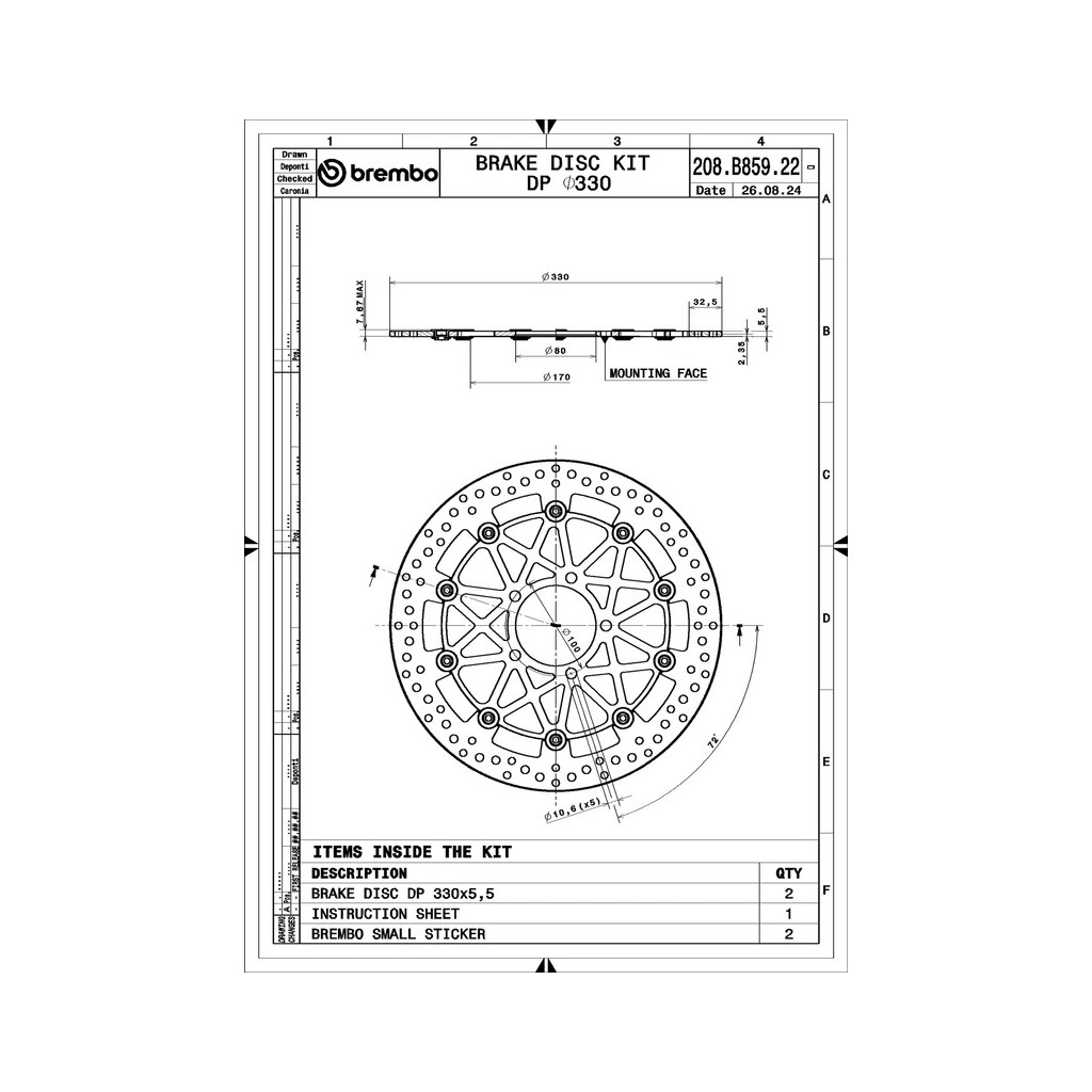Les disques SuperSport sont disponibles avec une largeur de surface de freinage de 34 mm et une épaisseur portée à 5,5 mm ; ils sont interchangeables avec les disques d'origine sans nécessiter de modifications. Ces disques entièrement flottants sont réalisés en acier traité thermiquement, capable de supporter des contraintes thermomécaniques extrêmes, avec une cloche en alliage d'aluminium usinée dans la billette.