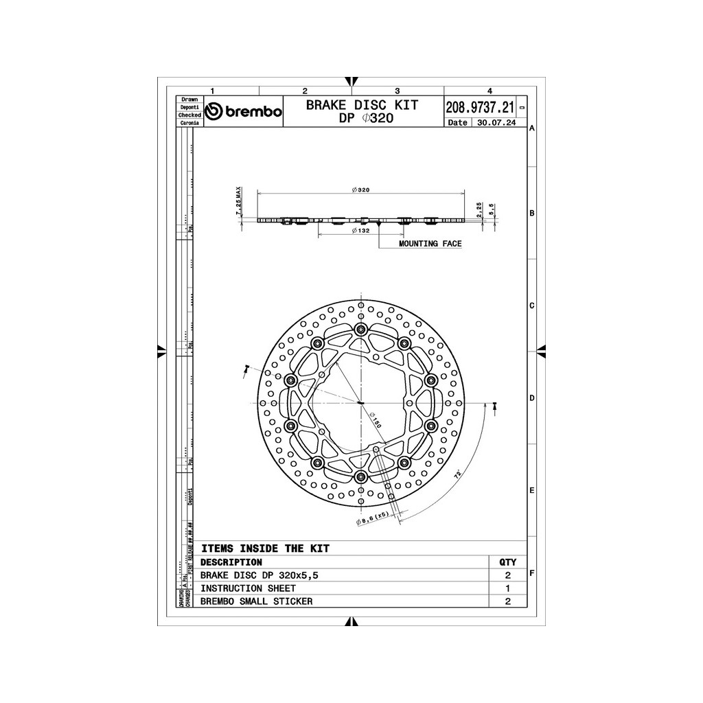 Les disques SuperSport sont disponibles avec une largeur de surface de freinage de 34 mm et une épaisseur portée à 5,5 mm ; ils sont interchangeables avec les disques d'origine sans nécessiter de modifications. Ces disques entièrement flottants sont réalisés en acier traité thermiquement, capable de supporter des contraintes thermomécaniques extrêmes, avec une cloche en alliage d'aluminium usinée dans la billette.