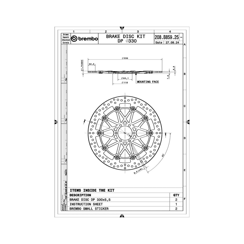 Les disques SuperSport sont disponibles avec une largeur de surface de freinage de 34 mm et une épaisseur portée à 5,5 mm ; ils sont interchangeables avec les disques d'origine sans nécessiter de modifications. Ces disques entièrement flottants sont réalisés en acier traité thermiquement, capable de supporter des contraintes thermomécaniques extrêmes, avec une cloche en alliage d'aluminium usinée dans la billette.