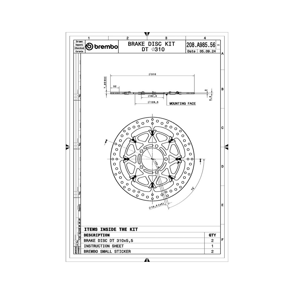 Le disque T-Drive, basé sur l'expérience acquise lors des épreuves MotoGP et Superbike, présente un couplage innovant entre le rotor et la cloche, constitué de huit goupilles en forme de T usinées dans le disque et de huit contours sur la cloche, permettant ainsi l'élimination des cliquets d'entraînement. Une étude spécifique des tolérances montre que cette configuration permet d'obtenir non seulement une réduction significative du poids mais aussi un flottement axial et radial capable de transmettre un couple de freinage plus important.